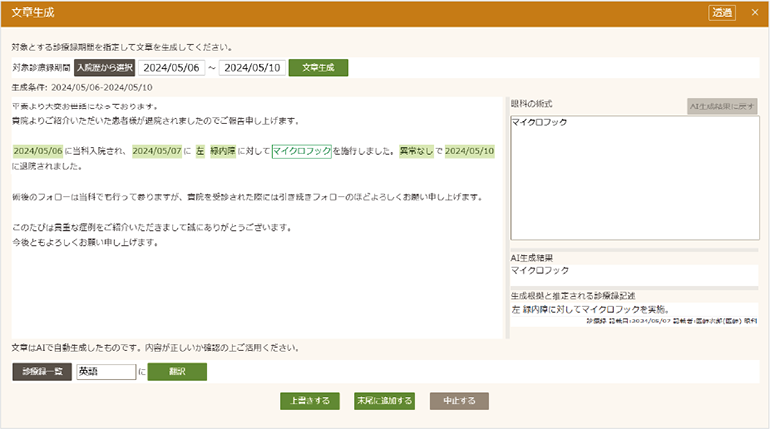 - 生成AIによるテンプレートを利用した診療録からの医療文章生成※
